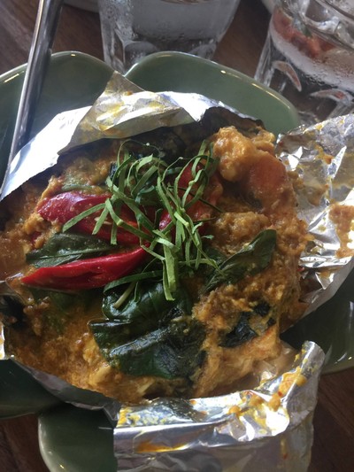 หาร้านอาหารทานมื้อค่ำในตัวเมือง ร้านที่อยากไปคนเยอะ ขับวนหาอยู่ 2-3 ร้าน มาเจอร้านนี้ที่ลูกค้าไม่เยอะมาก แต่ครัวใกล้จะปิด อยากทานเส้นหมี่แกงปู ของก็หมด สั่งมาทาน แกงส้มปลากระพงผักรวม ไข่เจียวกุ้งสับ คะน้าปลาเค็ม หมูคั่วเกลือและห่อหมกทะเล อาหารอร่อยทุกอย่าง จานไม่ใหญ่มาก ราคาเป็นมิตร การบริการก็ดีดูเพิ่มเติม