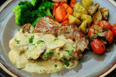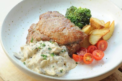 สเต็กหมูย่างด้วยวิธีการกริลผ่านเตาย่าง ทำให้หมูของเราหอมเป็นพิเศษ พร้อมวิธีและเทคนิคการหมักที่ไม่เหมือนใคร ราดด้วยซอสครีมเห็ดสูตรโฮมเมดของเราเองที่เน้นคุณภาพมาอย่างดี ไม่ใช่ซอสสำเร็จรูป ทำให้รสชาติสดใหม่ หอม กลมกล่อม