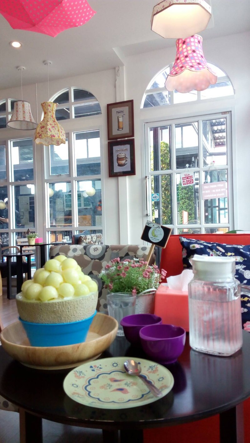 Happy Moon's Cafe คลองเรียน 2 พื้นที่เดียวกับร้าน Eighteen Nineteen หาไม่ยาก จอดรถยาก ถ้าไม่นับความไม่รับแขกของแม่ค้าที่สาละวนกับการทำบิงซู คนเยอะ และรอนาน รสชาติบิงซูก็ดี มะม่วงฉ่ำๆ นั่งได้ชิลๆ เลือกท็อปปิ้งได้ คนซื้อกลับบ้านกันเยอะ ที่นั่งน้อย นอกจากบิงซูก็มีขนม มีเค้ก เครื่องดื่มร้อนเย็นเหมือนร้านอื่นๆดูเพิ่มเติม