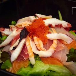 สลัดผักสดพร้อมปลาดิบรวม หอมกรอบ อร่อยสดชื่น เต็มไปด้วยวิตามินและแร่ธาตุเพื่อสุขภาพ (แถมฟรี Miso Soup เมื่อสั่งซื้อครบ 500 บาท หรือ สั่งเมนู Donburi)