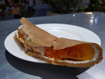 ร้านปิด 17.00 น.แต่ว่ามีคนรอเรื่อยๆ วันนี้สั่งแบบ 1.รวมใหญ่ใส่ไข่ 1 2 หวาน 1 3. เค็ม 2 4. น้ำอัญชัน 1 ขวดละ 40 บ. 5. น้ำส้มขวดละ 30 บ. อร่อยทุกแบบ ไม้พอแย่งกันกิน กรอบบาง แผ่นใหญ่ ไส้เยอะ กรอบนอกนุ่มในดูเพิ่มเติม