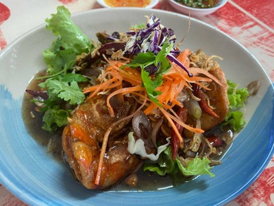 เราปักหมุดร้านนี้ไว้สำหรับทริปนี้ว่าต้องขอมาลองให้ได้ ร้านเค้าเป็นร้านเล็กๆมีโต๊ะนั่งไม่กี่โต๊ะ แนะนำหลีกเลี่ยงช่วงเร่งด่วน และอย่ามาตอนหิวจัด เพราะคุณลุงจะทำทีละจาน รอนานนิดนึง เมนูของร้านมีเยอะมาก แปะอยู่เต็มกำแพงเลย จริงๆถ้าไม่เลือกพวกกุ้ง,ปู หรืออาหารทะเล ก็จะราคาไม่แพงนะ เราสั่งไข่เจียวปู, แกงจืดหมูสับบ๊วบ,กุ้งผัดซอสมะขาม,ออส่วน มาลองดู อาหารทุกจานอร่อยหมด แต่ที่เราชอบมากๆเป็นพิเศษเลยคื...อ่านต่อ