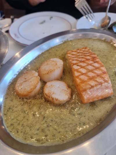 น้ำตาจะไหล เมื่อคุณเค้าชวนมากินร้านนี้ เป็นร้าน fine dining ย่านหลังสวนที่ผมชอบมา เคยมาแล้วครั้งนึง รอบนี้มาอีก ตั้งใจมาก จะต้องกิน ปลาแซลมอน นอร์เวย์ เสิร์ฟพร้อม ซอส คาเฟ่เดอปารีส ให้ได้ ทำดีมากๆ อร่อยมากๆครับ การบริการคือ สุดยอดแล้ว ร้านนี้ มา 2 คน เลยสั่ง 3 อย่างครับ ได้แก่ ปลาแซลมอน นอร์เวย์ เสิร์ฟพร้อม ซอส คาเฟ่เดอปารีส และก็ Spaghetti Olio Bacon & Sausage ตามด้วย ซุปครีมสแกลล็อบ นอกนั้น แ...อ่านต่อ
