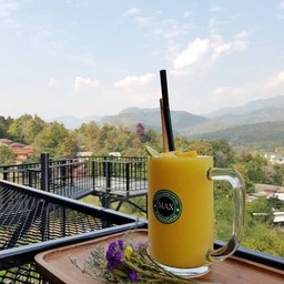 ร้านนี้เป็นอีกหนึ่งร้านที่ต้องเดินทางขึ้นมาไกลตั้งใจมานิดนึงแต่คุ้มค่ากับวิวที่ได้รับวิวเป็นวิวภูเขาที่สวยงามสีเขียวชอุ่มกินกาแฟเครื่องดื่มหรืออาหาร ขนมที่นี่ก็มีให้เลือกหลากหลายกินไปเขากับบรรยากาศที่เห็นวิวภูเขาแบบนี้ถือว่าคุ้มค่ามากครับวันนี้สั่งเป็นเมนูลิ้นจี่โซดาดูเพิ่มเติม