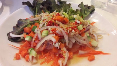 มาเที่ยวกาญจนบุรี ถึงกาญจนบุรีก็เที่ยงกว่าๆพอดี แวะหาอะไรกินที่ร้านอบอุ่นเฮ้าส์ ร้านน่ารักค่ะ ด้านหน้าร้านมีร้านเค้ก ขนมปังด้วย ทางร้านทำขายเองด้วย มีที่นั่ง 3 ห้อง แต่กลางวันเปิด 2 ห้อง ตอนมาถึงคนเยอะค่ะ โซนที่เปิดเต็มหมด วันนี้สั่งเมนู สเต็กซี่โครงหมูบาร์บีคิว 185 บาท ชิ้นใหญ่ และถูกมาก เกินราคา รสชาติดีค่ะ อร่อยด้วยเนื้อหมูนุ่ม รสชาติดีค่ะ ยำแซลม่อน 150 บาท แซลม่อนชิ้นโต น้ำยำอร่อย รสชาติใช้...อ่านต่อ