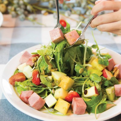 HAM SALAD WITH ORGANIC ROCKET + SPINACH āđāļŠāļĢāļīāļāļāļđāđāļāđāļģāļŠāļĨāļąāļāļāđāļģāļŠāļĨāļąāļāļŪāļąāļāļāļĩāđāļāļīāļāļāļāļĄāļąāļŠāļāļēāļĢāđāļ