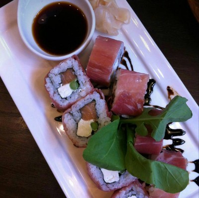 Fresh Salmon, Cream Cheese, Asparagus & Cucumber Rolls wrapped with Parma Ham