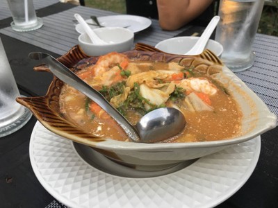 อาหารอร่อยมาก โดยเฉพาะแกงส้มกุ้งผัก รสชาติเผ็ดจัดจ้านพอดีๆ ไม่หวานเกินไป ไม่เปรี้ยวเกินไป ซดน้ำไปเกือบหมดชาม เมี่ยงส้มโอก็อร่อย แต่ส้มตำต้นอ่อนทานตะวัน เฉยๆ เครื่องดื่มสั่ง น้ำมะนาวโซดามิ้นท์ (แฟนเป็นคนดื่ม บอกเฉยๆ) กับ น้ำมะนาวน้ำผึ้ง หวานไป แถมรู้สึกว่าผสมโซดาหน่อยๆ (ถ้าคนไม่ชอบโซดาก็อาจจะไม่ปลื้ม) พนักงานบริการดีมาก ขณะรออาหารก็นำนิตยสารมาให้อ่านไปพลางๆ ในร้านสะอาดสะอ้าน วิวมองไปเห็นภูเข...อ่านต่อ