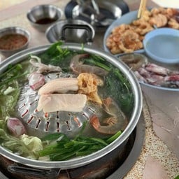 ร้านหมูกระทะเจ้าเก่า เปิดมานานคนทานเยอะ ตอนนี้ขยับขยายร้าน ออกมานั่งด้านนอก แลเวมีแบบหม้อต้มชาบูด้วย หมูกระทะชุดละ 300฿ เลือกเนื้อสัตว์ได้ วันนี้สั่งหมู แต่มันเยอะไป แทบไม่ได้กินเลย 😭 โดยรวมรสชาติปานกลาง น้ำจิ้มออกไปทางหวานเผ็ด ไม่มีอะไรเด่นดูเพิ่มเติม