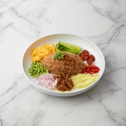 Shrimp paste fried rice with sweet pork and fresh vegetables