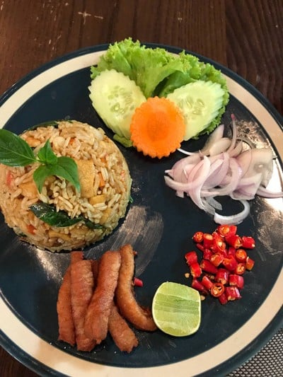 พอดีผ่านมาแถวนี้ เลยเปิดวงในว่ามีร้านอะไรน่าลองบ้าง เจอร้านนี้เป็น Wongnai User Choice เลยลองแวะดู ร้านสวย บรรยากาศดี เหมือนนั่งทานข้าวที่บ้าน มีทั้ง indoor และ outdoor มาทานช่วงค่ำ ร้านตกแต่งไฟได้สวยดี เมนูที่สั่ง -ข้าวผัดกากหมูกับหมูแดดเดียว จานนี้รสชาติดี กากหมูเข้ากับข้าวผัดได้ดี หมูแดดเดียวนุ่มอร่อย -ข้าวผัดทะเลคลุกไข่เค็ม จานนี้ธรรมดามาก เหมือนข้าวผัดทะเลทั่วไป ไข่เค็มเป็นไข่แดงเค็ม ใส...อ่านต่อ