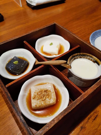 เพิ่งเคยลองร้านนี้ครั้งแรก ตามมาจากรีวิวที่บอกว่าเต้าหู้ร้านนี้อร่อยมาก ตอนแรกเข้ามาในร้านไม่มีพนักงานมารับ เลยยืนงงออยู่ในร้านซักพัก ทางร้านจะมีเมนูset lunch, a la carte แล้วก็เมนูพิเศษแยกออกมาอีกอัน แนะนำให้สั่งlunch set เพราะคุ้มกว่า แถมมีเครื่องเคียง ขนมหวานให้ด้วย เมนูแนะนำ: 1. Chirashi Sushi Set 280-. 5. Kamatoro and Wagyu steak don 699-. รวมเมนูที่สั่งไป: 1. Chirashi Sushi Set 280-...อ่านต่อ