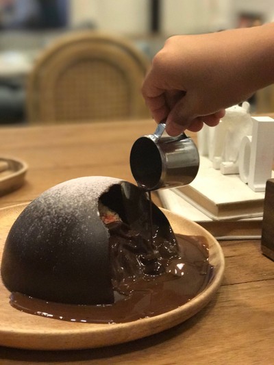 ร้านอยู่ the circle ราชพฤกษ์ มีโปรโมชันลดราคาแล้วแต่วัน พอดีตอนไปไม่ได้รู้โปรก่อน โชคดีไปวันพฤหัสที่ stawberry dome ลดราคาจาก 205 บาทเหลือ 103 บาทพอดี ตอนเสริฟมาเป็นโดมกลมๆแล้วพอราดชอกโกแลตลงไปเท่านั้นโดมก็แตกออก ดูมีอะไรให้ลุ้นดี และรสชาติก็อร่อยค่ะ ชอบ ส่วนอีกเมนูที่ลดวันนั้เช่นกันคือ คาราเมลปั่น จาก95 บาท เหลือ 48 บาท ดูดไปคำแรกหวานมาก เมนูนี้ไม่ผ่านค่ะ แต่สรุปคือมาตอนโปรนี่คุ้มมากค่ะดูเพิ่มเติม