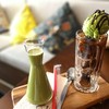 Frozen Choco Green Tea, Blueberry cheesecake, Iced Americano