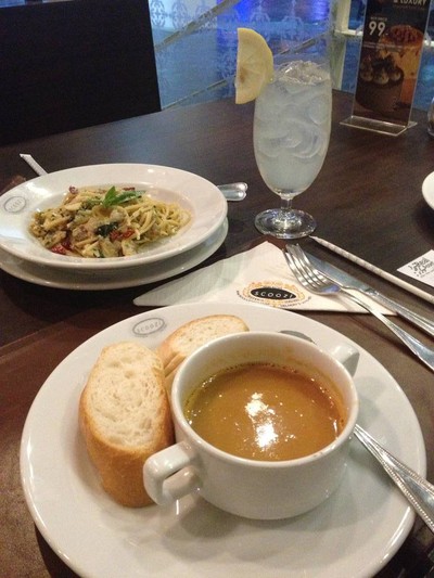 อยากหา pizzaกับอาหาร italianทานแถวถนนเจริญนครอาจจะมีตัวเลือกไม่มากนักเท่าไหร่ วันนี้อยากทาน pizza เลยแวะมาทานที่ scoozi ในตึก lighthouse ร้านอยู่ด้านในโดมด้านหน้านั่งไปสักพักร้อนมากไปหน่อยบอกพนักงานน้องช่วยปรับแอร์ให้ สั่ง pizza สองหน้าไปหนึ่งที่หน้ามีฮาวายเอี้ยนกับมิกซ์มีทไป รอประมาณ 15นาทีพอมเสริฟเห็นตรงของสีไม่ค่อยเกรียมนัก pizza เป็นแบบบางแต่ไม่มีความกรอบและหอมเตาอบเลย ตรงกลางน้ำแฉะนองแป้...อ่านต่อ