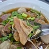 ร้านก๋วยเตี๋ยวเนื้อวัวเก่าแก่ในร่านราชปรารภ อยู่ริมถนน มาไม่ยาก มีดีที่เนื้อเปื่อยและน้ำซุปที่หอมน่ากิน เป็นสูตที่หอมกระเทียมเจียวและโรยพริกไทยได้ไม่ขัด วันนี้สั่งแบบรวมเนื้อบ้าง ทั้งเนื้อ เครื่องใน หนึบแน่นดีทีเดียว ใช้วัตัดิบดี สด สะอาด แนะนำทำน้ำจิ้มแจ่วไว้จิ้มด้วย ยิ่งจิ้มเนื้ เปื่อยยิ่งอร่อยจัดจ้านเลย ถ้าแบบเนื้อรวมเขาคิดพิเศษ ให้เยอะแบบเต็มๆ ชามดูเพิ่มเติม