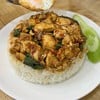 ข้าวกระเพราไก่ล้น จุกๆ ร้านสเต็กอาม่า