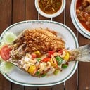 ร้านอาหารที่มีเมนูปลาหลากหลาย แต่เมนูที่สั่งจะเป็นข้าวคลุกน้ำพริก ผักและปลาทูทอด กรอบๆ หอมๆ น้ำพริกสามารถเลือกได้ว่าต้องการน้ำพริกอะไร เช่น น้ำพริกตาแดง น้ำพริกปลาร้า และอื่นๆ ทานคู่กับผักต้ม ผักชุปแป้งทอด อร่อยมาก ราคา : 5/5 คุณภาพ : 5/5 ความอร่อย : 5/5 ความสะอาด : 5/5 ความเร็ว : 5/5 บริการ : 5/5 สถานที่ : 5/5 ความคุ้มค่า : 5/5ดูเพิ่มเติม