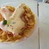 สั่งจ้ำบ๊ะรสโกโก้มา ที่นี่จะดังจ้ำบ๊ะก็คือน้ำแข็งปั่น ทำเป็นปังเย็นในรูปต่างๆ เช่น หัวใจ กังหัน ฯลฯ น่ากิน สวยงาม จะมีใส่มุกชานมกับคอนเฟลกซ์มาด้วย เรียกว่ารูปร่างกินขาด แต่ถ้าพูดถึงรสชาติ อร่อยใช้ได้ แต่ความหอมและความมันอาจจะยังแพ้เจ้าอื่นๆดูเพิ่มเติม