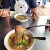 ผ่านมา เลยแวะชิม ถือว่ากลางๆ ใช้ได้ สมราคา ราดหน้าหมูเส้นใหญ่ หมูชิ้นใหญ่ ก็นุ่มนะ แต่ก็ไม่นุ่มมากยังมีเจ้าที่นุ่มกว่า เส้นใหญ่หนานิดๆ นุ่ม เหนียวใช้ได้ คะน้า ก้านนุ่ม อ่อน อร่อย น้ำแกงราดหน้าใส่แป้งเยอะข้น รสชาติออกเค็มนำเล็กน้อย ปรุงพริกป่นน้ำส้มเองก็พอจะกลบความเค็มได้ดูเพิ่มเติม