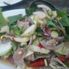 มีโอกาสผ่านมาลองร้านใหม่ เห็นว่าเปิดมาได้เดือนกว่า ร้านต้องเลี้ยวมาในเวิ้งหน่อยนึงนะครับสังเกตุดีๆ ป้ายไม่ค่อยใหญ่ อาหารที่สั่งมามีลาบหมูทอด หน้าตาไม่เหมือนในเมนู มาแบนๆสไตล์ทอดมันออกรสจืดๆเผ็ดหน่อยๆ เอ็นหอยผัดฉ่ายังไม่จัดจ้านเท่าที่ควร ซี่โครงหมูบรั่นดีทอดมาแทะเล่นเพลินๆแต่ไม่ค่อยรับรู้ถึงรสหรือความนุ่มจากบรั่นดี อาหารแนะนำของร้านคือปลาช่อนเจ็ดสี หน้าตาน่ากิน น้ำยำมีกุ้งแห้งทอดตัวเล็กๆราดมาด้วย แต่รสชาติยังจืดไปหน่อย สรุปว่าอาหารร้านนี้ออกจืดนำ ทั้งๆที่ร้านอาหารแนวนี้ส่วนใหญ่จะนำด้วยรสหวานหรือเค็ม มีนักร้อง2กะ คนแรกเดี่ยวเปียโน คนที่2เป็นน้าที่เล่นกีต้าร์อยู่โคขุน-ปลาเขื่อน ถ้าเอารสชาติอาหารจริงๆให้2ดาวกว่า แต่ปัดขึ้นไปหน่อยจากบรรยากาศกับดนตรีครับ