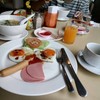 บริการอาหารเช้ามาคู่กับห้องพัก โดยมีให้เลือกเพียงสามเมนู คือชุดอาหารเช้า ชุดข้าวต้ม และชุดที่สามน่าจะเป็นข้าวผัด ส่วนเครื่องดื่มเป็บแบบบริการตัวเอง มีกาแฟร้อน น้ำส้ม และน้ำเปล่า แม้มีให้เลือกน้อย แต่ก็คัดสรรค์คุณภาพมาดีในระดับหนึ่งดูเพิ่มเติม