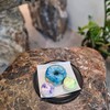 น่าสนใจตรงที่ Flints Kraft & Kafe นำเอาไอเดียเรื่องของความสวยงามของหินมีค่าทั้งรูปทรงและสีสันตามธรรมชาติมาใช้ในการดีไซน์คอนเซปต์และทุกอย่างภายในร้าน ทั้งโลโก้ และเฟอร์นิเจอร์ ซึ่งเชื่อมกลับไปยังแบรนด์จิลเวลรี Rock Me Jewelry ธุรกิจก่อนหน้านี้ . เนื่องจาก Flints ตั้งใจเปิดขึ้นมาให้คาเฟ่เป็นเพียงส่วนหนึ่ง เพราะแต่ละชั้นทางร้านดีไซน์ไว้เพื่อเป็น Rock Me Shop ชั้นลอยสำหรับโชว์คอลเลคชั่นของจิลเวอรี ชั้น 2 เป็น Rock Me Kraft Studio สำหรับเวิร์คชอปทำจิลเวอรี ชั้น 3 เป็น Gallery and Free Space และชั้นดาดฟ้าจะเปิดให้เป็นจุดชมวิวในอนาคต . เราว่าดีไซน์ของที่นี่มีความเป็นธรรมชาติสูง สังเกตได้จากเฟอร์นิเจอร์ไม้ หิน และต้นไม้ภายในร้าน แน่นอนว่ามันเป็นทรง Freeform ตามธรรมชาติของไม้และหิน ไม่เพียงแต่ดีไซน์เท่านั้น ขนมของร้านก็นำเอาคอนเซปต์เดียวกันมาใช้ด้วย . ด้านหน้ามีสวนหินที่ดูเซนหน่อย ๆ กับโปสเตอร์บนกำแพงให้เป็นมุมถ่ายรูป แต่เมื่อเปิดประตูเข้าไปเหมือนเจอสวนขนาดย่อมที่เต็มไปด้วยหินและต้นไม้ที่อยู่ในร่มได้ แน่นอนว่ามันดูมินิมอลเพราะเป็นต้นไม้ขนาดเล็กทำให้ดูไม่รก . เราลองกาแฟดริปของร้านเพราะเห็นซีเคชั่นที่มีทั้งจากโรงคั่ว Craft Coffee Roaster และ Koff & Bun ที่ล้วนเป็นโรงคั่วกาแฟแถวหน้า เราเลือก Costa Rica ของ Craft เราว่าดริปออกมาดีและบอดี้แน่น ๆ ส่วนตัวเราชอบ เพราะกินกับ Galaxy โดนัทสายรุ้งที่เคลือบน้ำตาล ทำให้ลดทอนความหวานได้ดีเลย . แต่ที่เราชอบก็คือ Stone ซิกเนเจอร์มาการองที่ร้านทำออกมาคล้ายหินที่มีลวดลาย มี 8 สี 8 รสชาติ ราสป์เบอร์รีครีมชีส บลูเบอร์รีครีมชีส คุกกี้แอนด์ครีม ซอลต์คาราเมล เสาวรส คาปูชิโน พิชตาชิโอ และเลมอน เราว่ามาการองเนื้อหนึบและไม่หวานไป . ใครสนใจเวิร์คชอปจิลเวอรีอาจจะต้องรออีกสักหน่อย เพราะตอนนี้ทางร้านเตรียมให้คาเฟ่พร้อมก่อน สามารถดูได้ที่เพจร้าน
