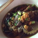 ร้านบ้านๆ เป็นบ้านไม้ ขายอยู่ใต้ถุน นั่งเย็นๆ กันเองๆ แต่รสชาติเด็ด ใครอยู่ใกล้ไม่ควรพลาด เริ่มต้นชามละ 25 บาท มีน่อง ปีก ตีน เลือด เติมพริกเผาจะได้รสจัดเข้มข้นมาก