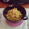 แวะมาทำงานที่โรงแรมนี้ตอนช่วงเย็น แต่ตอนนี้เที่ยงกว่าแว้วต้องขอเติมพลังก่อนนะครับ ผมสั่งข้าวอบหม้อดินมา กลิ่นเครื่องแกงออกมาเลย ใส่เครื่องต่างๆ ทั้งไส้กรอก,หมูหยอง,หอมหัวใหญ่,ข้าวโพด,ถั่วลันเตา และสั่งทอดมันปลากรายไข่เค็มมาอีกหนึ่งจาน โดยรวมถือว่าขอฝากท้องแก้หิวได้คร้าบดูเพิ่มเติม