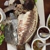 หยุดยาวนี่ออกจากเมืองหลวงมาแถวชนบทหน่อย ได้มาลิ้มลองปลาเผาแบบท้องทุ่ง - ปลาช่อนเผา ตัวกำลังพอดี มีผักเคียงข้าง น้ำจิ้มสองแบบ แบบซีฟู้ดกับแบบน้ำพริกบ้านๆ ส่วนตัวปลาเผาแบบท้องนา เกล็ดปลานี่ดำเมี่ยมมาเชียวดูเพิ่มเติม