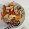 สลัดหมูตะไคร้ ราคาประมาณ 50 บาท คือจะได้ปริมาณผักที่แตกต่างกันไปตามจำนวนและชนิดของผักที่เหลืออยู่ในแต่ละวัน ถ้าไปกอนตอนเย็น เรียกได้ว่าเป็นสเน่ของร้านนี้เลยทีเดียว มีน้ำสลัดให้เลือกหลายแบบ แต่ว่าตอนเย็นก็จะเหลือแค่บางแบบอีกเช่นกันดูเพิ่มเติม