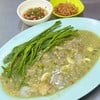 ใครเคยมาร้านนี้ตั้งแต่อยู่แถวสถานีรถไฟสามเสน คนจะเยอะๆ ร้อนๆ แล้วร้านก็ย้ายมาอยู่ตรงร้านจำลองไก่ย่างเดิม ถามว่าย้ายมานานเท่าไหร่แล้ว ทางร้านบอกว่า 6 ปีแล้ว โอ้ เราไปอยู่ที่ไหนมา ที่นี่มีแอร์เย็นฉ่ำ อาหารก็เร็ว อาหารแนวนี้หากินยากแล้วล่ะ วันนี้ติดใจหลายอย่าง เช่น ปลาทูทอดกระเทียม ผู้ซึ่งไม่ได้ถ่ายรูป เพราะอร่อยมาก หมดเร็ว หัวปลากรอบกินได้เลย และแกงป่า ปลาเห็ดโคน ผู้ซึ่งไม่มีรูปถ่าย ชอบตรงที่แล่เนื้อปลามาให้ กินสะดวกมาก ทางร้านนอกจากใส่มะเขือ ถั่วฝักยาวแล้ว ยังใส่มะระ แปลกดี ติดใจ ไอติมน้อยหน่ามากมาย เนื้อน้อยหน่าเป็นชิ้นๆ เลย
