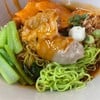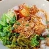 ร้านนี้อยู่ในตลาดวังหลัง มีหมูกรอบ หมูแดง เกี๊ยวหมู เกี๊ยวกุ้ง ลูกชิ้นปลา ไข่ยางมะตูม บะหมี่มีหมี่เหลืองกับหมี่หยก บะหมี่ถือว่าให้มาเยอะพอสมควร แต่น่าจะลวกทิ้งไว้นานแล้ว ค่อนข้างเละ และจับกันเป็นก้อน น้าราดรสออกเค็มนิดนึง หมูกรอบ เนื้อนิ่ม มีมันหน่อยๆ หนังกรอบอร่อยดีเหมือนกัน หมูแดงเฉยๆ ราคาเริ่มต้น 50บาททไปจนถึง 80บาท ปริมาณที่ให้ถือว่าค่อนข้างเยอะ แต่ความอร่อย อาจจะกลางๆ พอทานได้ ชามนี้บะห...อ่านต่อ