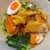 อีกหนึ่งร้านดีในซอยวังหลังที่มีแต่ของอร่อยๆ ร้านนี้ขึ้นชื่อเรื่องความคุ้มเพราะเสิร์ฟมาจานใหญ่ไม่อิ่มไม่คุ้ม ไม่ใช่ร้านนี้บอกเลย ข้าวหมูแดงน้ำราดรสชาติเค็มๆหวานๆมันๆอร่อยดี และหมูแดงชิ้นโตสัมผัสนุ่มทุกคำที่กัด พ่วงกุนเชียงดี และไข่ต้ม เป็นจานที่ให้สารอาหารเต็มที่แคลเลอรีไม่ต้องไปสน แต่ราคาดีที่ 50฿ เหมาะสำหรับคนชอบความคุ้มค่า อิ่มนานๆ จานเดียวจบดูเพิ่มเติม