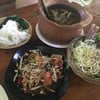 เมนูเด็ดมาเมื่อไหร่ไม่สั่งไม่ได้ ขนมจีนหม้อปลาร้า มีปลาให้เลือก 3 ชนิด ปลาดุก ปลาช่อน ปลากระพง เราเลือกปลาช่อนค่ะ น้ำนี่นัวปลาร้าถึงเครื่อง อีกอย่างขาดไม่ได้ คั่วหมีโคราช เส้นนุ่มไม่แฉะ ร้านนี้ต้องระวังสำหรับคนไม่ทานเผ็ดเพราะอาหารรสจัดจ้านทุกจานเชียวคุณ รอนานซักนิดนึง เพราะเป็นอุตสาหกรรมครอบครัวดูเพิ่มเติม