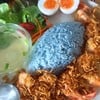สายมูวัดสมาน แวะเติมพลังก่อน ร้านอยู่ก่อนถึงวัดประมาณ 1 กม. เข้าสวนมะพร้าวมาสุดซอย จะเจอคาเฟ่เล็ก ๆ วิวหลักล้านอยู่สุดทาง เปิดประตูร้านเล็ก ๆ เข้าไปจะเจอวิวริมแม่น้ำบางปะกง ลมพัดเย็นสบายชวนให้หลับมาก ไปถึงแล้วไม่รู้จะสั่งอาหารหรือถ่ายรูปก่อนดี สรุปคือ กินไปถ่ายรูปไปสินะ เมนูวันนี้สั่งข้าวกระเพรากุ้งแม่น้ำ 190 บาท แอบแซบอยู่นะ ร้านนี้มีที่พักด้วยนะ เผื่อใครอยากดึ่มด่ำกับบรรยากาศยามค่ำคืน