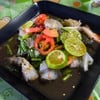 ปลากระพงนึ่งซีอิ๊วน้ำซอสหวานจัด