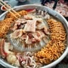 #จ่าอูหมูเกาหลี ชุมทางสยามมาร์เก็ต หรือ ชุมทางสยามยิปซีเก่า เลียบทางรถไฟ ตรงข้ามกับ MRT บางซ่อน เข้าไปด้านในนิดเดียว ร้านใหญ่ ตั้งเป็นจุดเด่น หมูกระทะเจ้าดังที่เริ่มขยายหลายสาขา ทั้งในกรุงเทพฯ และ ปริมณฑล และ เริ่มมีที่ต่างจังหวัด ไม่ใช่บุฟเฟ่ต์ มีให้เลือกทานเป็นชุดๆ ชุดละ 200, 300, 500 ไม่รวมน้ำดื่ม ต้องการอะไรเพิ่มสั่งแยกเป็นถาดๆ ได้ครับ คิวยาวมาก แต่คนก็เรื่อยๆ รอไม่นานนัก ยิ่งดึกยิ่งคนเยอะ ช่วงนี้มีสถานการณ์ โควิด 19 ทางร้านจะปิดเร็วหน่อยครับ ทานได้ถึง 21.00 น. มีที่จอดรถพอประมาณ ก็ด้านในตลาดบริเวณด้านข้างร้าน ส่วนบริเวณหน้าร้านจะเป็นที่ตั้งเก้าอี้สำหรับไว้ให้นั่งรอคิว มาถึงแล้วอย่าลืมไปลงชื่อรอคิวก่อนนะครับ ไม่งั้นอดรับประทาน #ชุด300 ครบทุกอย่างอยู่แล้ว มีหมูหมัก หมูสามชั้น กุ้ง ปลาหมึกสด ปลาหมึกกรอบ ปูอัด ตับหมู ไข่ไก่ ผักกาดขาว ผักบุ้ง กะหล่ำปลี เห็ดเข็มทอง วุ้นเส้น แครอท ข้าวโพด กินได้ประมาณ 2-3 คน ไม่พอก็สั่งแยกเป็นอย่างๆ เพิ่มได้ ไม่จำกัดเวลา เติมถ่านเมื่อหมดไฟแล้วฟรี ของดีใช้ได้เลย น้ำซุปมีให้ทุกโต๊ะ น้ำจิ้มนี่เด็ดสุด ไม่ต้องปรุงเพราะไม่มีเครื่องให้ปรุงครับ 555 เปรี้ยว เผ็ด หวาน มาครบเลยครับ อร่อยสุดๆ #Happyboy💯