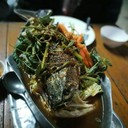 ร้านนี้เมื่อก่อนเคยอยู่เป็นแพในน้ำแต่เนื่องจากเขาทำผนังกั้นเลยต้องขยับเข้ามา เป็นร้านริมน้ำ ส่วนพิกัดที่มาบอกไม่ถูก รู้แต่ว่าไม่ไกลจากลาบลุงนิล อาหารในเมนูค่อนข้างหลากหลายวันนี้ลองสั่งซี่โครงหมูผัดพริกปน,แกงคั่วเห็ดเผาะ, แกงเลียงกุ้งสด และเนื้อแดดเดียว(เมนูนี้ไม่ได้ชิมแต่เพื่อนบอกว่าใช้ได้) อาหารโดยรวมรสชาติกลางๆแกงคั่วเห็ดเผาะแข่งคนค่อนข้างใช้ได้ ซี่โครงหมูผัดพริกปนเป็นเมนูทีแปลกดี คือเอาหมูทอ...อ่านต่อ