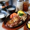 สเต็กเนื้อ ที่เสิร์ฟมาในรูปแบบกระทะร้อนสไตล์ญี่ปุ่น