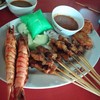food center นี้อยู่ใน garden by the bay ค่ะ อยู่ลึกสุดเลย ก่อนถึง Marina barrage ไม่ใช่ห้องแอร์นะคะ ชื่อ satay by the bay แต่ก็ไม่ได้มีแต่สะเต๊ะนะ มีอาหารอื่นๆด้วย แต่เราก็อยากกินสะเต๊ะแหละ เลยไปสั่งร้านนี้ชื่อ City Satay ราคาก็แพงอยู่ ได้สะเต๊ะแบบรวมๆมา มีหมู มีเนื้อ มีกุ้ง ส่วนก้อนขาวๆนั้น เหมือนข้าวแฉะๆอัดก้อน ย่างเบาๆ แล้วก็เสิร์ฟ เราว่าสะเต๊ะอร่อยดีค่ะ น้ำจิ้มก็ใช้ได้ เอาไว้เผื่อเป็นทางเลือกนึงเวลาไปเที่ยว garden by the bay ละหิวๆเนาะ