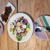 สลัดและสเต็ก ย่านสวนดอก ร้านติดถนนใหญ่ จัดให้ในราคามิตรภาพ นับเป็นร้านสลัดที่ตกแต่งสไตล์ minimal อีกร้านนึง โทนขาว-ไม้ สบายตา ให้ความรู้สึก healthy • ซีซ่าร์สลัด ผักสดดี ชีส น้ำสลัดค่อนข้างหวาน พอทานกับชีสแล้วค่อนข้างเลี่ยน • สันคอหมูย่างพริกไทยดำ เนื้อหมูคุณภาพดี แต่ติดมันมาก ย่างพริกไทยดำ แต่ซอสออกหวาน สรุป 2 รายการ ทานร่วมกันหวาน มัน เลี่ยน #AmazingThailandดูเพิ่มเติม
