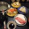 ร้านชาบูชาบู มีน้ำซุปให้เลือกหลายแบบ เลือกน้ำใส นั่งแบบแยกคนละหม้อไปเลย ดี ไม่ตีกัน ใครชอบอะไรก็ไปกินอย่างนั้น อาหารที่มาบนสายพานมีหลากหลาย กุ้งสดตัวเล็ก มีให้กินเยอะ แต่เนื้อมาน้อยมาก กินปลาแทนก็ได้ มีจานนนึงที่ถูกใจ เป็นลักษณะหมูสับหมักมา พอลวกสุกแล้ว หอมกลิ่นงา หมูนุ่มมาก อร่อยจริงๆ พวกของกินเล่นที่ต้องไปตักเองก็ชอบสลัด ถ้วยเล็กๆ กำลังพอดี ปลาไข่ชุบแป้งทอด ซูชิ ก็ตักมากินพอดีๆ ไม่พอค่อยไปตักใหม่ วันนี้ลด 50 % คนเยอะหน่อย แต่ปกติคนก็เยอะอยู่แล้ว ของเค้าสดดี แม่ครัววางของบนสายพานแบบมือเป็นระวิงเลย เพราะของแหว่งไปเยอะ แสดงว่าคนหยิบเยอะ