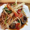 เห็นร้านนี้น่าจะเพิ่งเปิดใหม่ ลองมาชิมซะหน่อย ซอยทางเข้าร้านมีป้ายบอก มาถึงร้านด้วยอากาศที่ร้อน ดีนะที่เป็นห้องแอร์ แต่กลิ่นสีทาร้านยังไม่หมด ติดจมูกมาก รีบๆสั่งเหม็นสี -ยำวุ้นเส้นกุ้ง กุ้งสดดี ยำเผ็ด ตอนสั่งเพื่อนสั่งว่าไม่เผ็ดตอนมาเผ็ดจ้า -หอยแครงเผา น้ำจิ้มอร่อยดี ไม่รับบัตรเครดิตนะจร้า น้องเค้าบอกรับเอาบัตรไปแล้วเอามาคืนดูงงๆ น่าจะบอกคนเสริฟนิดนึงให้น้องเค้าเข้าใจดูเพิ่มเติม