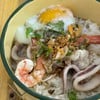 ร้านข้าวต้มแห้งที่มีเมนูให้เลือกหลายอย่าง ราคาดีสมเหตุสมผล มีน้ำเปล่าบริการตัวเอง เราสั่งเป็นเมนู ข้าวต้มแห้งทะเลไข่เยิ้ม จานเสิร์ฟมาเป็นสไตล์ปิ่นโตน่ารักๆ แต่หักคะแนนช้อนนิดหน่อย (เป็นช้อนส้อมยาวๆ ลายลูกศรที่บางๆ เราไม่ค่อยชอบสัมผัส ทำให้รู้สึกขาดอรรถรสในการกิน 🥹) แต่จริงๆ ข้าวต้มอร่อยมาก พวกของทะเลชิ้นใหญ่สด เนื้อเด้งหนุบหนับมากโดยเฉพาะปลาหมึก มีน้ำจิ้มตัดรสได้ดี ไข่เยิ้มความสุกกำลังโอเคเลย และน้ำซุปอร่อยมากก