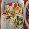 เมื่อวานนี้บรรดาแม่ๆเขาคุยกันว่าร้านนี้ส้มตำอร่อย วันนี้เลยลองมาทานกันดู ร้านนี้อยุ่ตรงถนนเกษตร-รามอินทราตัดใหม่ อยู่ตรงข้ามกับข้าวมันไก่โก๊ะตี๋เลยคะ อยู่ติดริมถนนเลย ข้างๆร้านก็มีอาหารหลายอย่างให้เลือกทาน แต่เราตั้งใจมากินส้มตำคะ วันนี้อาหารค่อยข้างชื้น เลยรู้สึกอับๆเล็กน้อย ให้บรรยากาศแค่ 3/5 ส่วนพนักงาน คุยกันไม่รู้เรื่องเลยคะ เป็นคนต่างชาติข้างบ้านเรา เลยงงๆกันนิดหน่อยให้แค่ 2/5 รสชาติอาหารอร่อยจริงค่ะ แต่เผ็ดมาก ท่านไหนที่ไม่ทานเผ็ดต้องบอกเด็กเสริฟคะว่าไม่เผ็ด หรือจะเขียนย้ำในใบตอนสั่งอาหารก็ได้คะ ว่าไม่เผ็ด ปกติเป็นคนชอบทานเผ็ดเจอร้านนี้เข้าไป เหงื่อไหลเลยคะ น้ำหูน้ำตาออกมาหมด ให้แค่ 4/5 ค่ะ หักความเผ็ดไปคะแนนนึงนะคะ