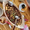 ร้านก๋วยเตี๋ยวเรือ ที่มีจุดขายอยู่ที่ชามโต แบบ 3-4 คนทาน ร้านอยู่ริมทาง โต๊ะที่นั่งเบอะดี แต่มีกลิ่นขยะ กลิ่นเหม็น ทำให้บรรยากาศ ไม่ดีสักเท่าไร ก๋วยเตี๋ยวน้ำตก ทั้ง หมูและเนื้อ ราคาเริ่มต้นที่ 40 บาท ไปจนถึงชามโต 270 บาท ผมสั่งชาม กลาง 40 บาท ปริมาณน้อยไปหน่อย ทานไม่กี่คำก็หมดละ ส่วนชามโต เลือกได้ 3 เส้นในชามเดียวกัน เหมาะสำหรับ 3-4 คน ทาน น้ำตกเค้ารสชาติเข้มข้น จัดจ้าน อร่อยมากครับ เครื่องด...อ่านต่อ