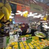 ข้าวเหนียวมูนหลากสีมาพร้อมกับมะม่วงหรือหน้าต่างๆให้เลือกราคาไม่แพง ในตลาดเสรี