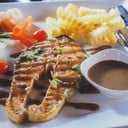 ใกล้โรงพยาบาล ราคาสมเหตุสมผล รสชาติกลางๆ มีที่นั่งชิลล์ บรรยากาศดี มีสระว่ายน้ำเล็กๆ 1. ข้าวอบสัปปะรด 120 บาท : เฉยๆ เหมือนจ้าวผัดข้างนอก แล้วไปใส่ในเปลือกสัปปะรด ไม่ค่อยมีกลิ่นรสสัปปะรดเท่าไหร่ 2.สปาเก็ตตี้โบโลเนส และ เสต็กไก่อย่างละ 79บาท : สปาเก็ตตี้รสชาติธรรมดา เสต็กไก่เนื้อนุ่มดี แต่ซอสเฉยๆ ขนมหวาน น้ำหวาน ราคาไม่แพง 3. บลูเบอรี่ชีสเค้ก 60 บาท : ครีมขีสผสมกับโยเกิตร์ ได้รสสัมผัสละมุน สดชื่น อร่อยมากๆ 4. ชีสเค้ก 60 บาท : เฉยๆมาก รสชาติทั่วไป เนื้อไม่เนียน ออกหนักๆ 5. เค้กช็อกโกแลตไร้แป้ง 60 บาท : อร่อยมาก เนื้อนุ่มเนียน เข้มข้น ไม่เหมือนเค้กไร้แป้งทั่วไป 6. ดาร์กโกโก้ปั่น 55 บาท : เฉยๆ
