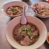 ร้านก๋วยเตี๋ยวเนื้อในเมืองเพชรอีกร้านที่แวะลอง บริเวณนี้หาที่จอดรถยากหน่อย เดินเข้ามาในร้านคนเต็มเกือบทุกโต๊ะ ที่นี่มีทั้งก๋วยเตี๋ยวเนื้อและหมู สั่งเกาเหลารวมเนื้อ ในถ้วยมีทั้ง เนื้อสด เนื้อเปื่อย เอ็นแก้ว ผ้าขี้ริ้ว ขอบกระด้ง ลูกชิ้น น้ำซุปใช้ได้ เติมซอสพริกลงไปหน่อย กลมกล่อมขึ้นเยอะดูเพิ่มเติม